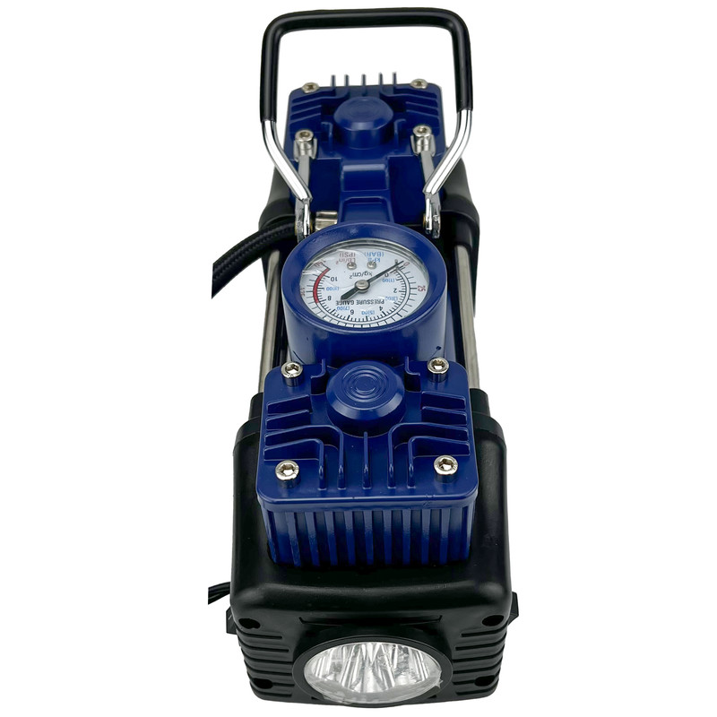 سایر توضیحات : قابلیت کار کردن با برق شهری ، باتری ۱۲ ولت خودرو ، فندکی خودرو - دارای چراغ قوه - دو سیلندر - ۱۸۰ وات - فشار ۱۵۰ PSI - خروجی ۴۵ لیتر در دقیقه